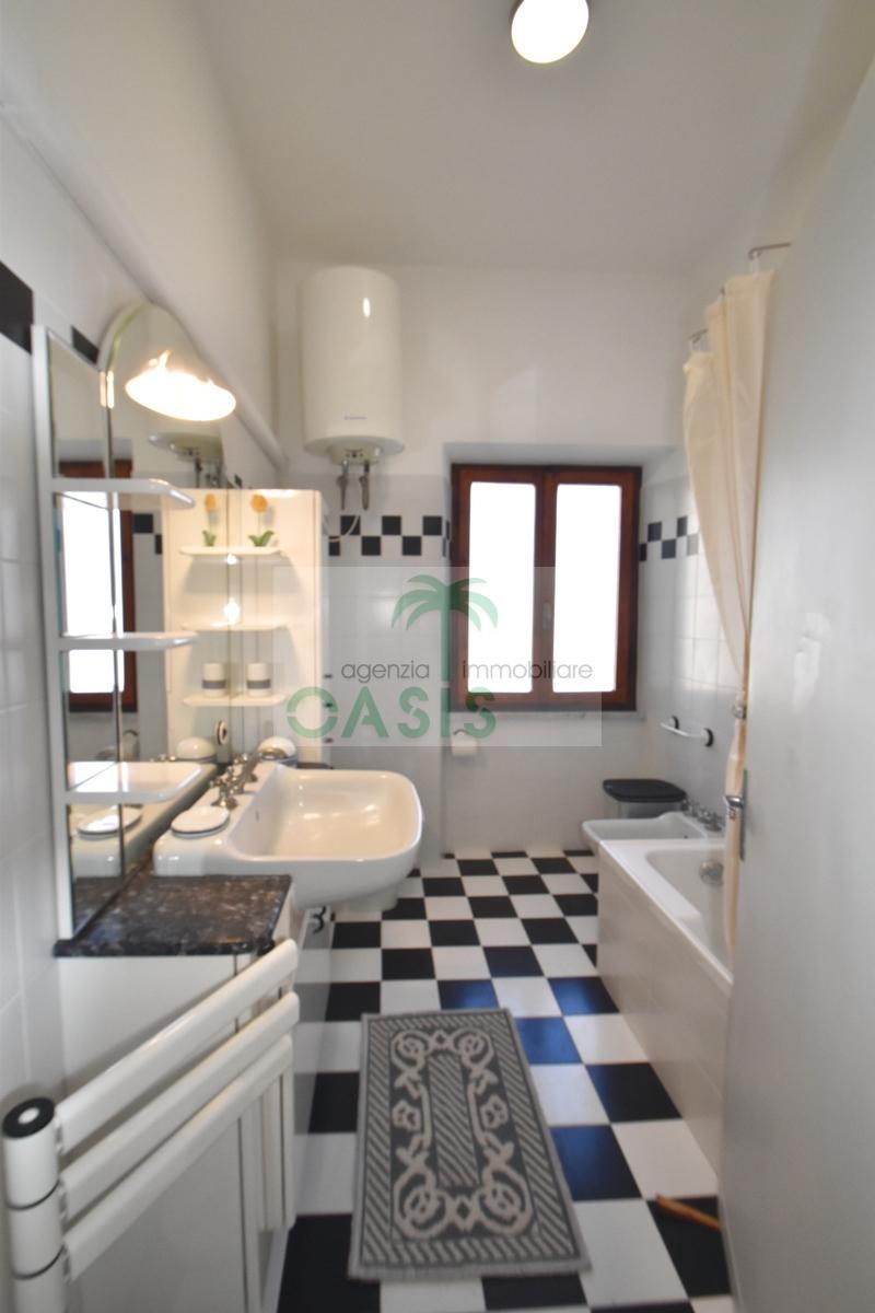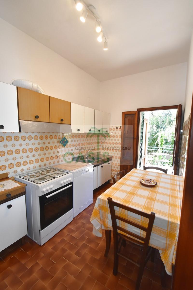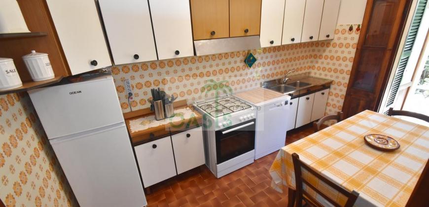 Nel caratteristico centro storico di Marina di Campo, centralissimo, ma in posizione tranquilla, vicino al mare ed ai servizi comodamente raggiungibili a piedi - Ampio e luminoso appartamento posto al primo piano e composto da cucina abitabile con accesso su terrazza privata coperta (con bagno di servizio dotato di lavandino, wc, lavatrice), sala da pranzo (climatizzata), studio con divano letto matrimoniale, n.2 camere da letto matrimoniali, n.1 camera con letto alla francese (una piazza e 1/2), bagno principale finestrato, dotato di vasca/doccia e completo di tutti i sanitari. Corridoio/disimpegno con 2° split aria condizionata.