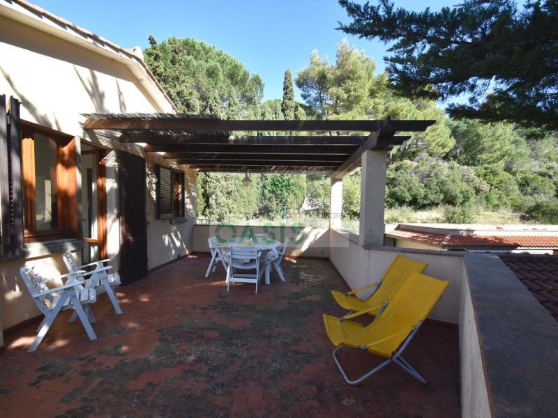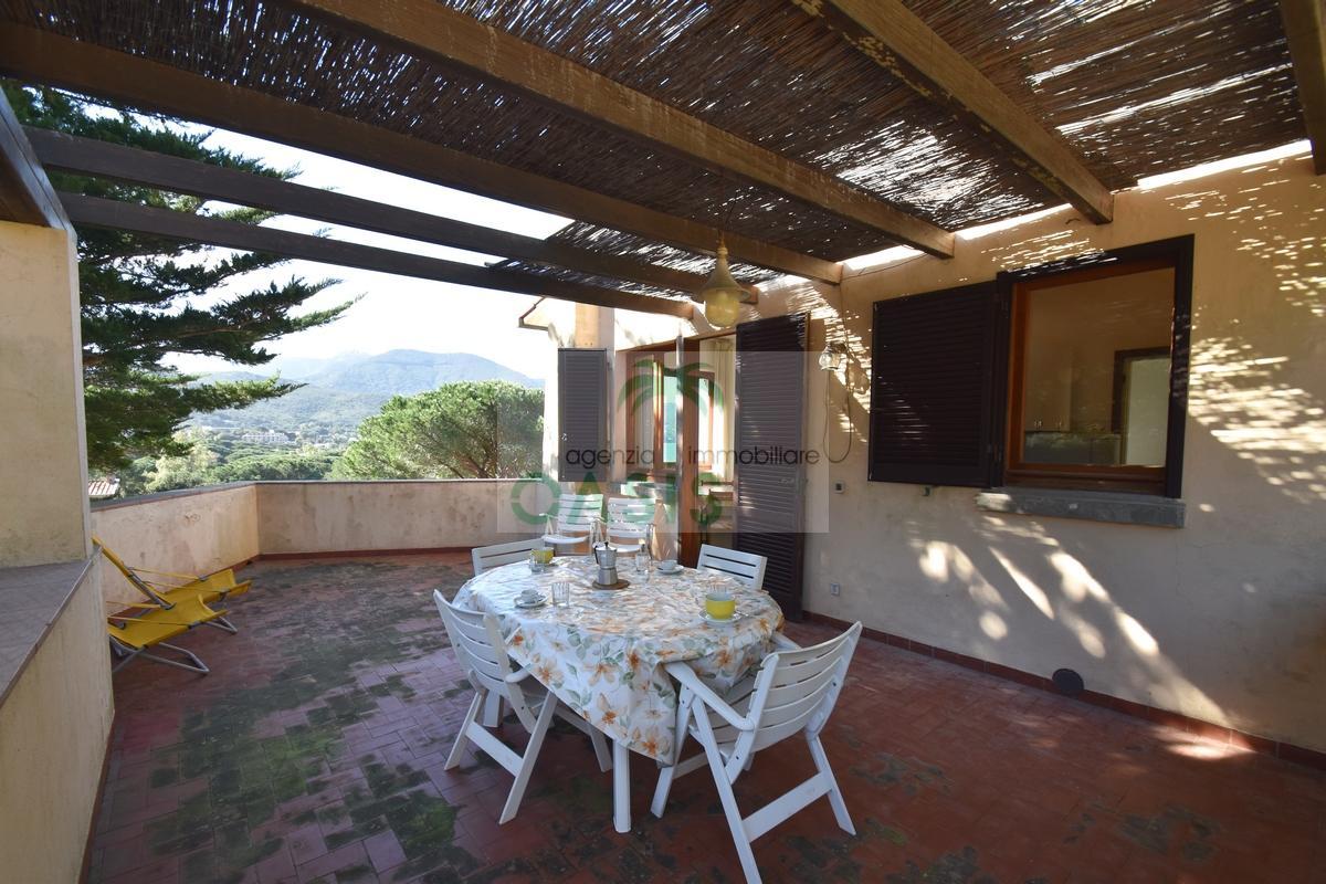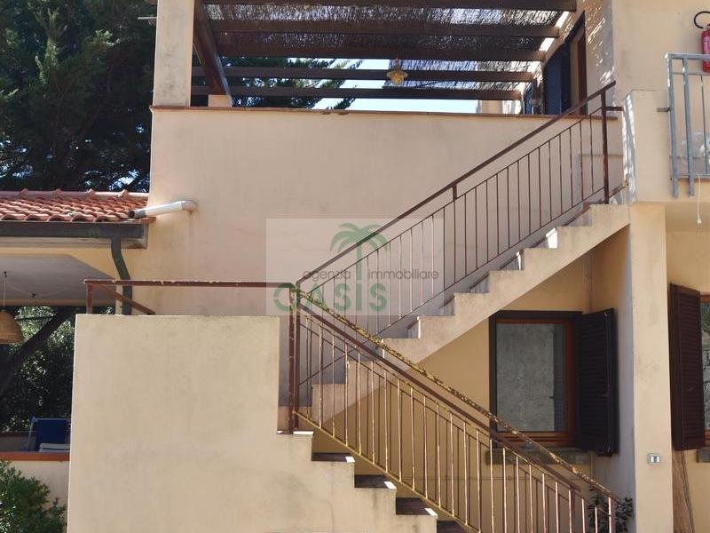 Comodo appartamento trilocale posto a piano primo con ampia terrazza panoramica pergolata, composto da soggiorno con divano letto doppio estraibile (n.2 singoli), cucinotto, camera matrimoniale, camera doppia (n.2 singoli eventualmente affiancabili), bagno con doccia finestrato e completo di tutti i sanitari