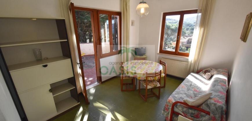 Comodo appartamento monolocale posto a piano terra con spazio esterno privato attrezzato, composto da soggiorno con angolo cottura e divano letto doppio estraibile (n.2 singoli), zona notte con letto matrimoniale, bagno con doccia completo di tutti i sanitari.