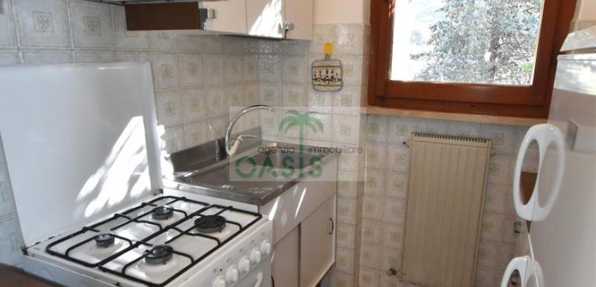 Comodo appartamento bilocale posto a piano terra con spazio esterno privato attrezzato, composto da soggiorno con angolo cottura e divano letto doppio estraibile (n.2 singoli), camera matrimoniale, bagno con doccia completo di tutti i sanitari