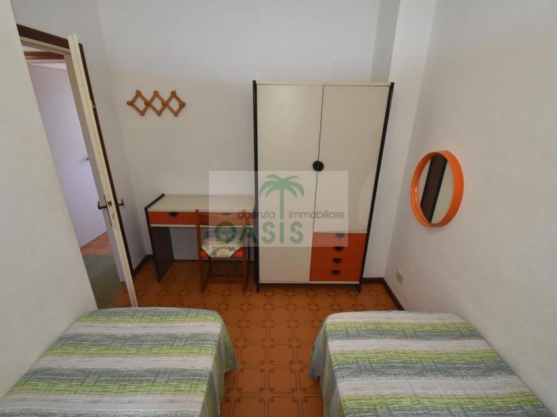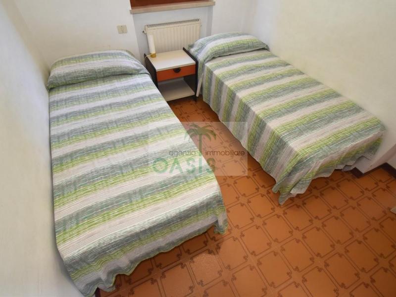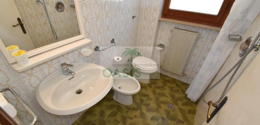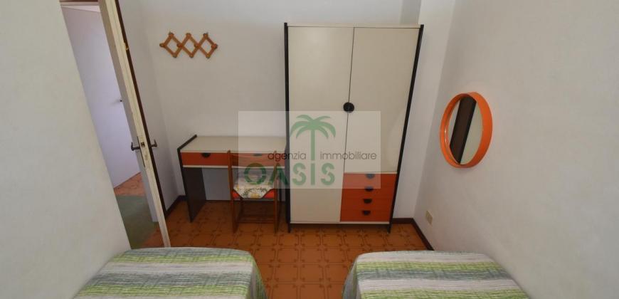 Comodo appartamento trilocale posto a piano terra/rialzato con ampia terrazza coperta, composto da soggiorno con divano letto doppio estraibile (n.2 singoli), cucinotto, camera matrimoniale, camera doppia (n.2 singoli eventualmente affiancabili), bagno con doccia finestrato e completo di tutti i sanitari