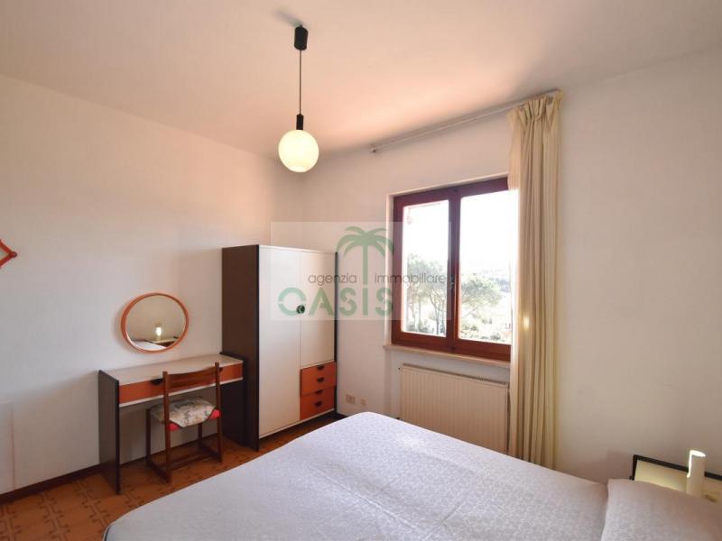 Comodo appartamento trilocale posto a piano terra/rialzato con terrazza panoramica VISTA MARE, composto da soggiorno con divano letto doppio estraibile (n.2 singoli), cucinotto, camera matrimoniale, camera doppia (n.2 singoli eventualmente affiancabili), bagno con doccia finestrato e completo di tutti i sanitari