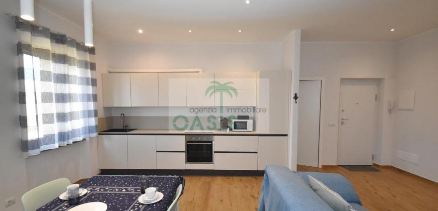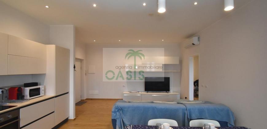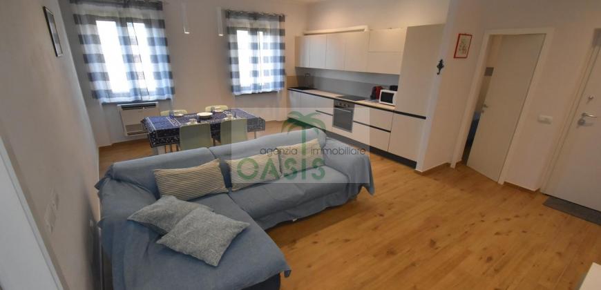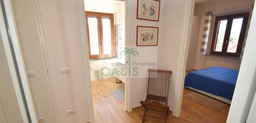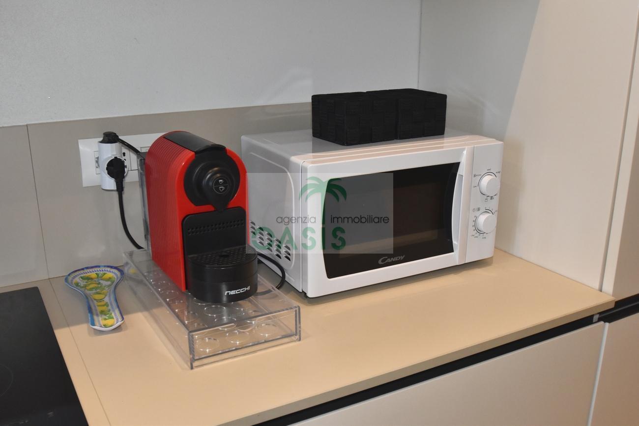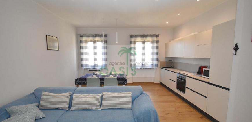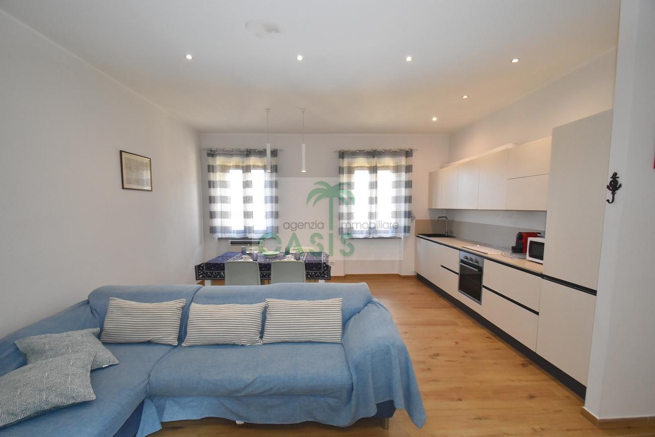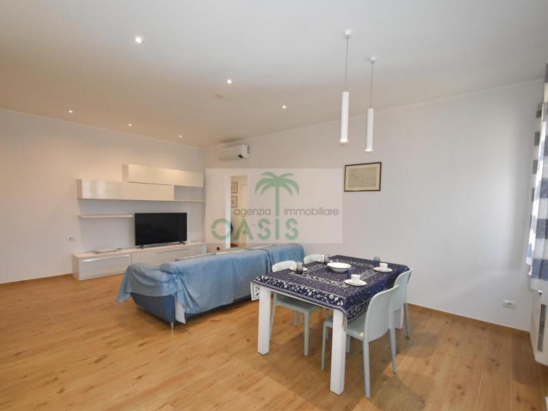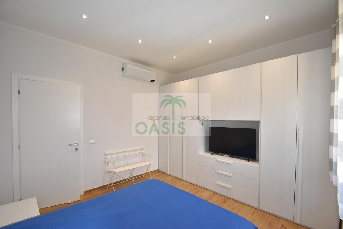 Centrale e vicinissimo al mare! Curatissimo appartamento trilocale con aria condizionata, recentemente e finemente ristrutturato, posto al 2° piano di piccolo complesso nel cuore della zona pedonale, a due passi dalla spiaggia. Composto da ampio e luminoso soggiorno con angolo cottura (piano a induzione, forno, lavastoviglie, frigo/freezer, microonde, tv), spaziosa camera matrimoniale con 2° tv led. (climatizzata), cameretta singola (n.1 letto), bagno finestrato, dotato di box doccia e completo di tutti i sanitari.
