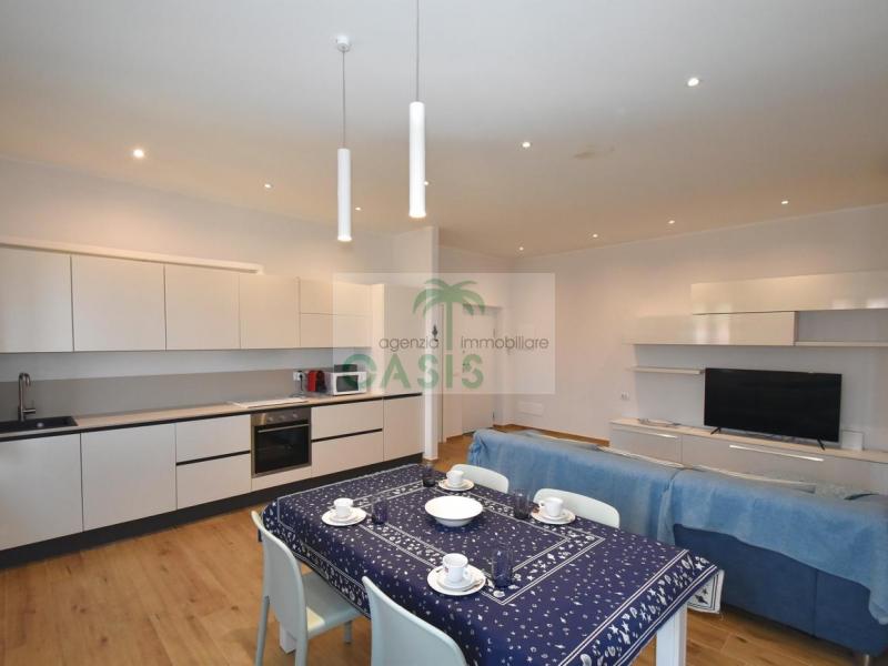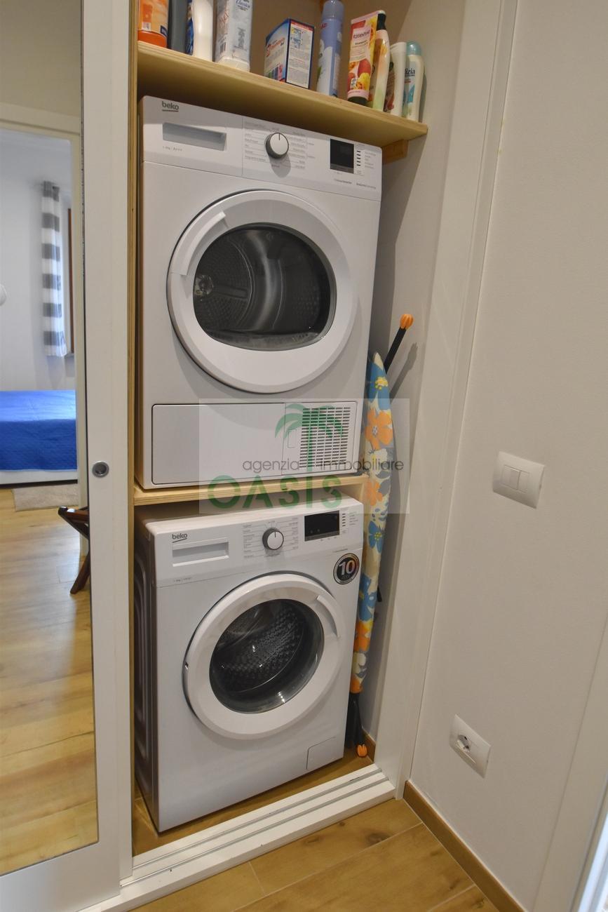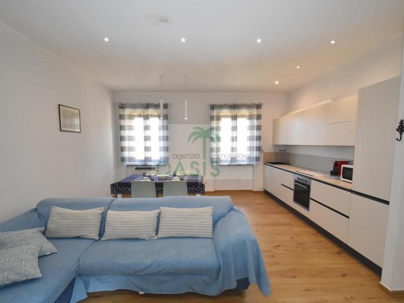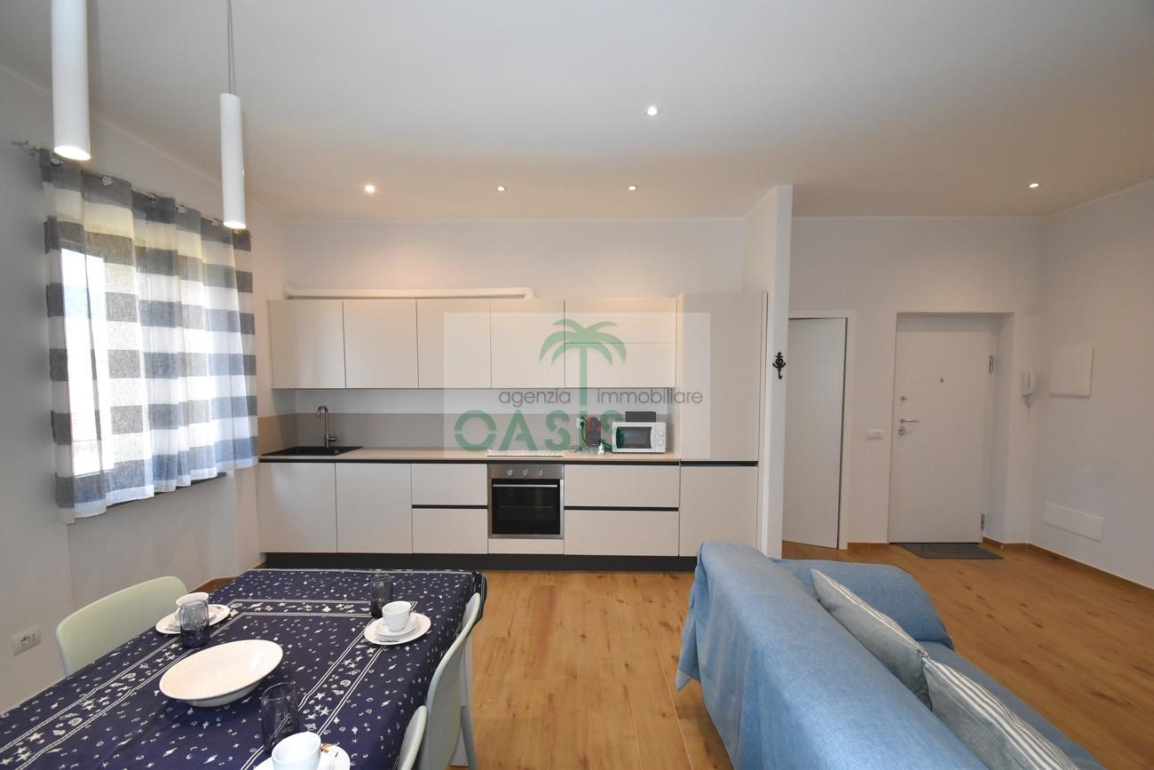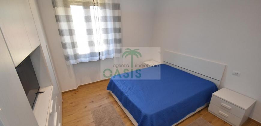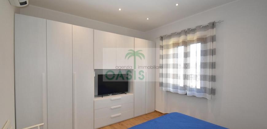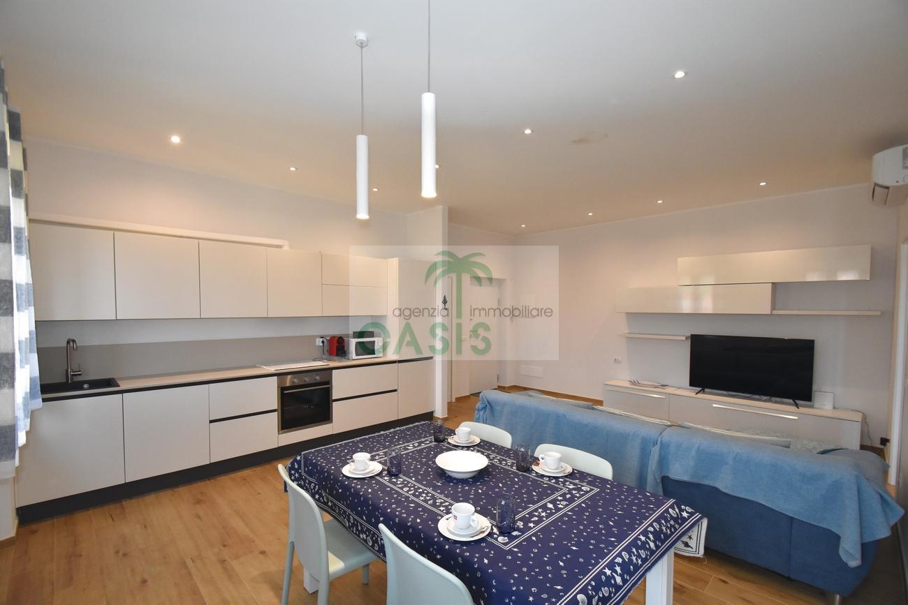 Centrale e vicinissimo al mare! Curatissimo appartamento trilocale con aria condizionata, recentemente e finemente ristrutturato, posto al 2° piano di piccolo complesso nel cuore della zona pedonale, a due passi dalla spiaggia. Composto da ampio e luminoso soggiorno con angolo cottura (piano a induzione, forno, lavastoviglie, frigo/freezer, microonde, tv), spaziosa camera matrimoniale con 2° tv led. (climatizzata), cameretta singola (n.1 letto), bagno finestrato, dotato di box doccia e completo di tutti i sanitari.