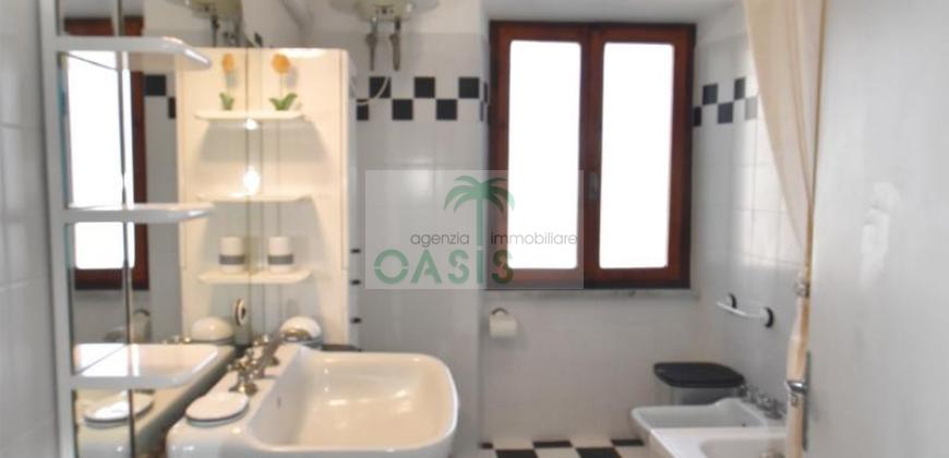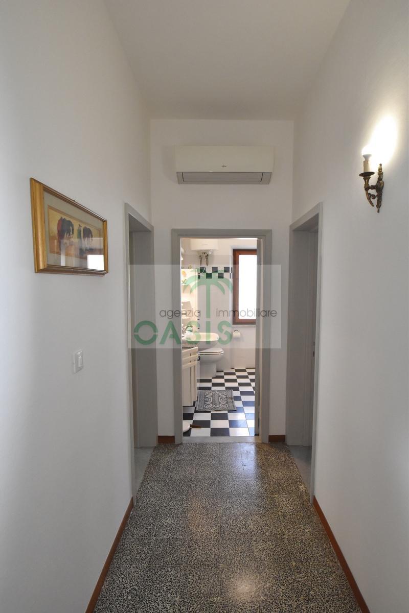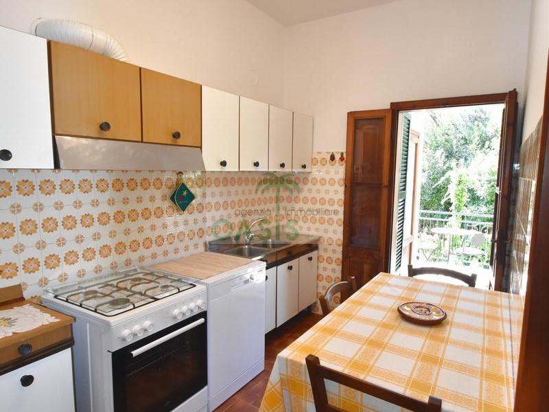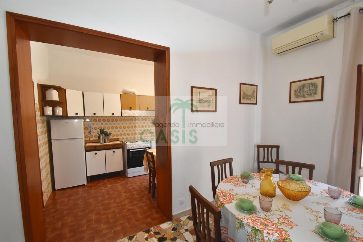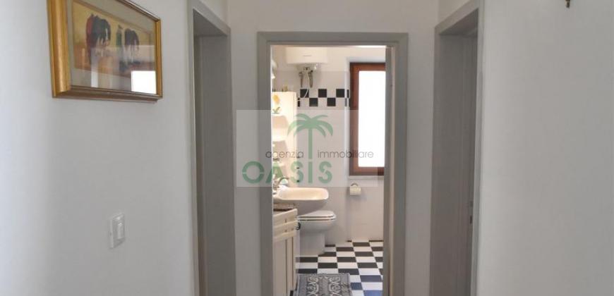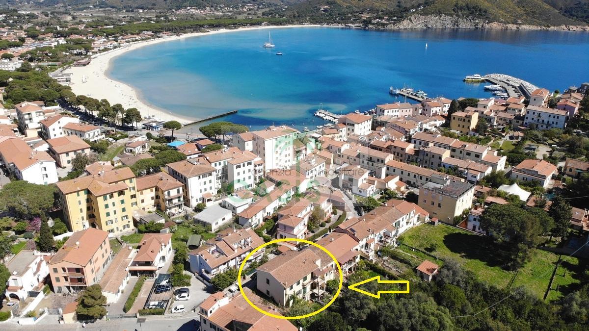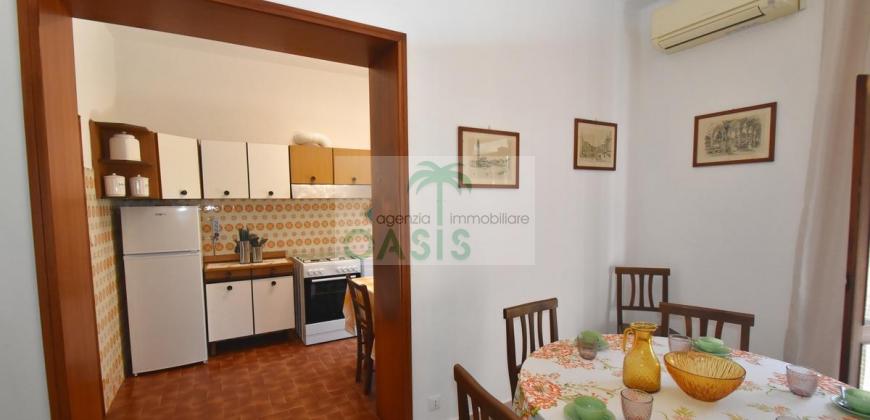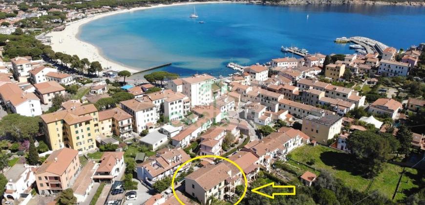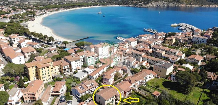 Nel caratteristico centro storico di Marina di Campo, centralissimo, ma in posizione tranquilla, vicino al mare ed ai servizi comodamente raggiungibili a piedi - Ampio e luminoso appartamento posto al primo piano e composto da cucina abitabile con accesso su terrazza privata coperta (con bagno di servizio dotato di lavandino, wc, lavatrice), sala da pranzo (climatizzata), studio con divano letto matrimoniale, n.2 camere da letto matrimoniali, n.1 camera con letto alla francese (una piazza e 1/2), bagno principale finestrato, dotato di vasca/doccia e completo di tutti i sanitari. Corridoio/disimpegno con 2° split aria condizionata.